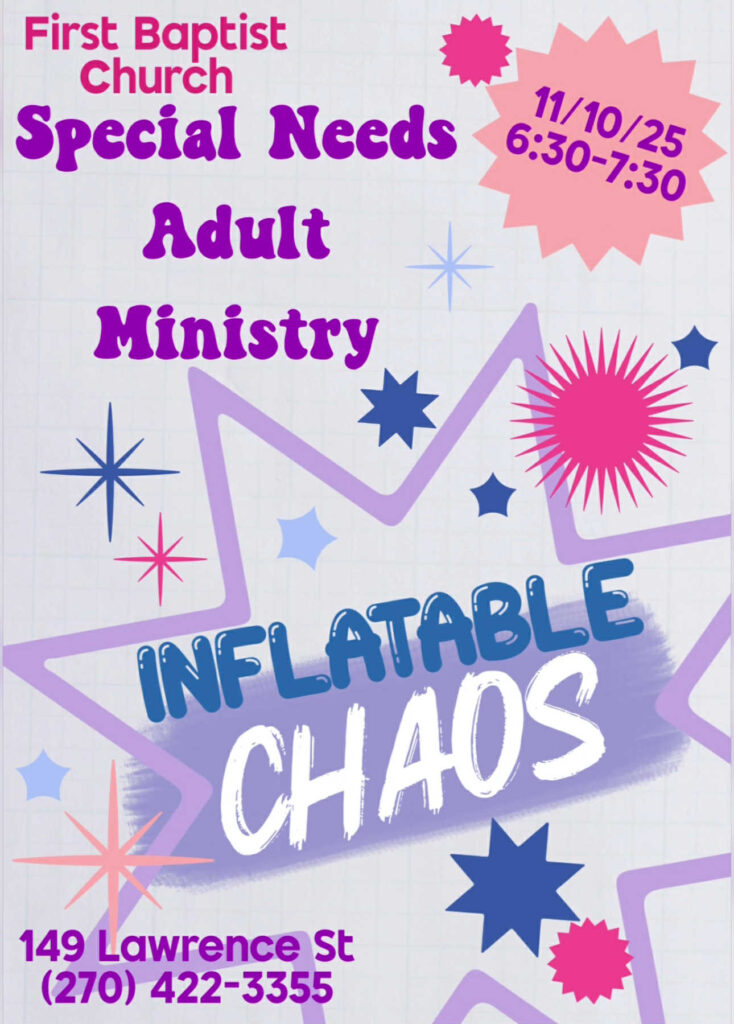 This is a ministry designed to support adults with disabilities in ways that allow them to be included in church activities and to allow us to share the Gospel with them and their families. This ministry is a great outreach and witness to our community to help meet the spiritual and social needs of adults with disabilities in our area.